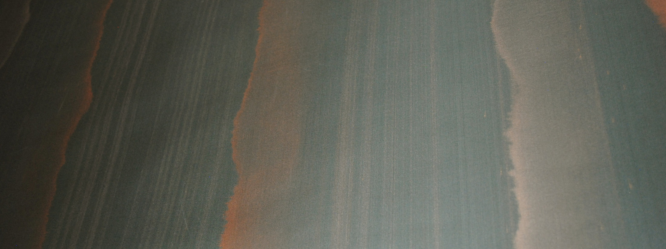 What began as a simple, unplanned gesture evolved into “Travertine”-a design that captures the raw elegance of nature with its shimmering texture and earthy tones. The brushed and layered effect is created using washes of iridescent metallic paints on silk.