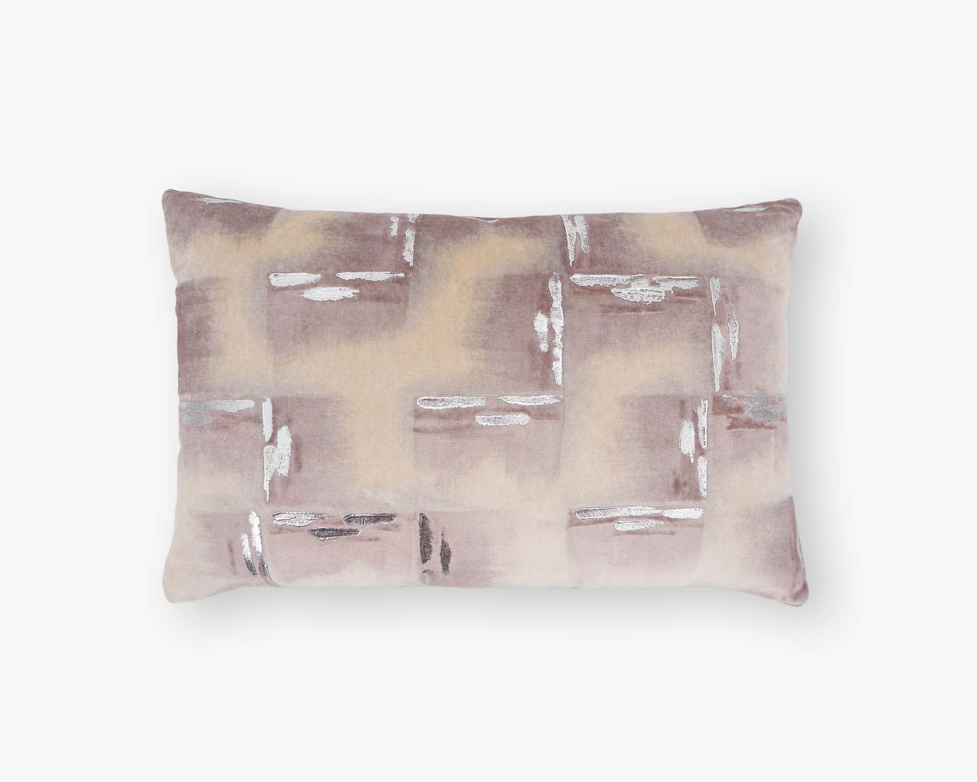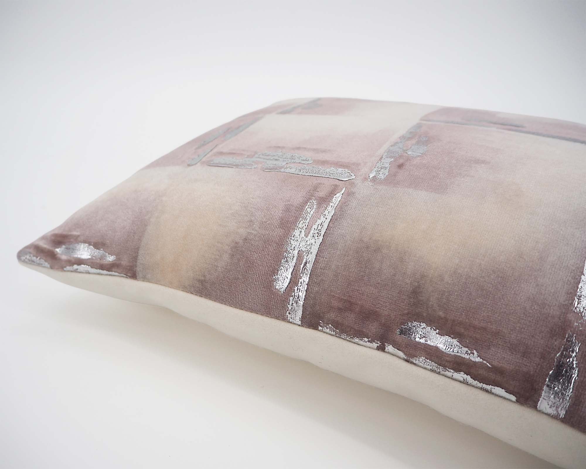 A romantic blend of mauves and dusty roses are enhanced by delicate metallic hand-painted details that add depth and luminosity.