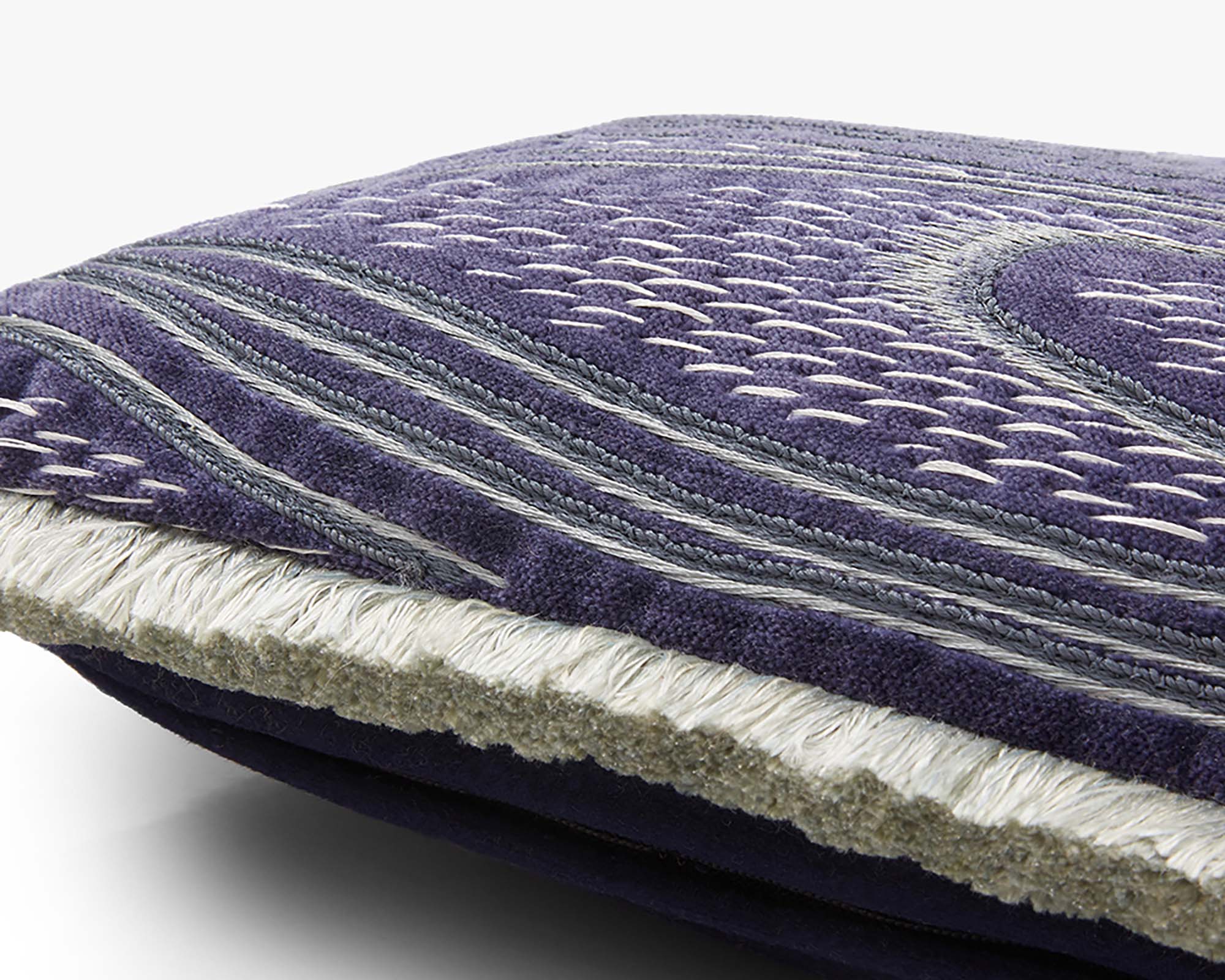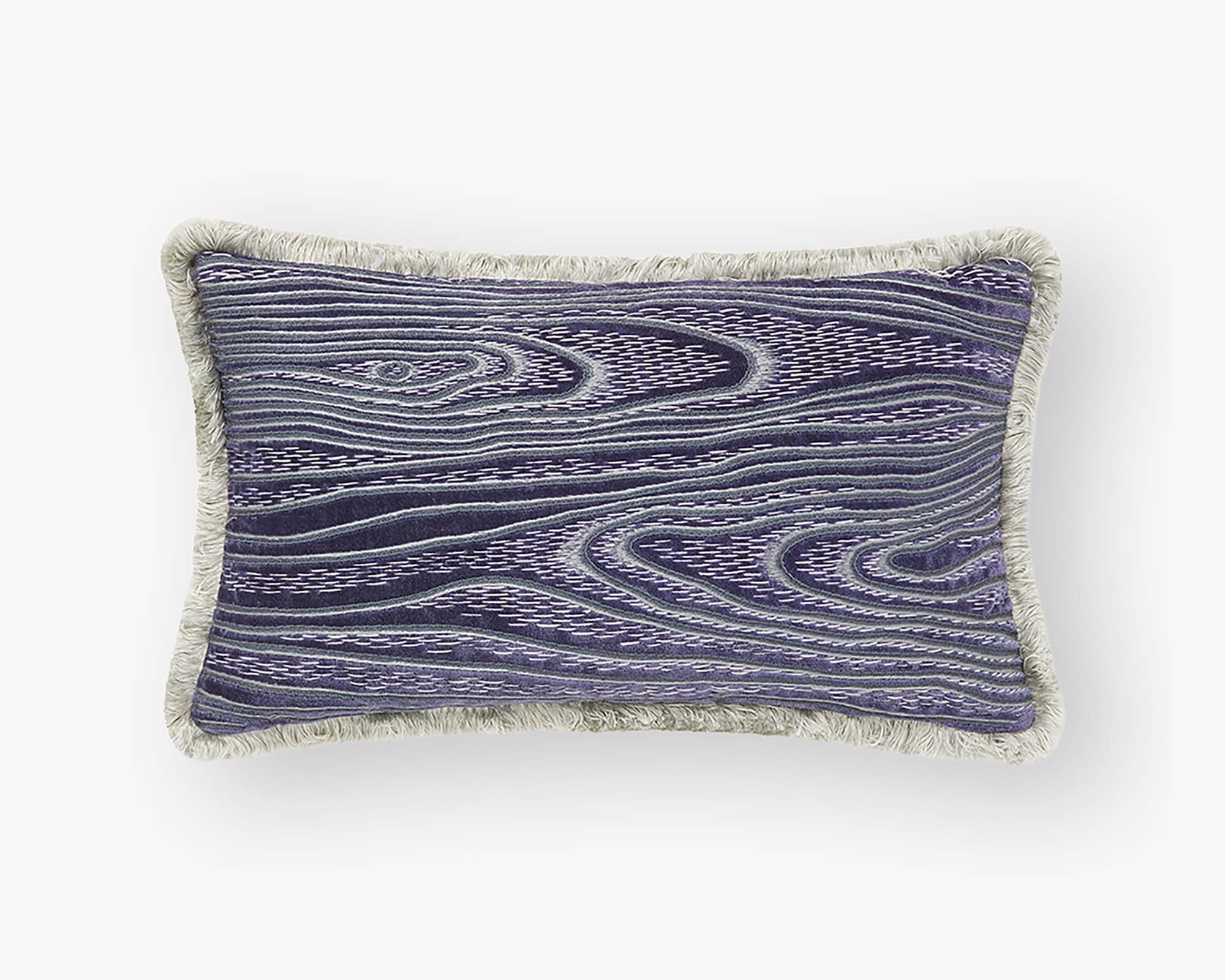 • Our Woodgrain cushion is inspired by some beautiful oak floorboards at our co-founders Tim and Lizzie’s home. These boards have had their grain blasted, then filled with gold, before being stained and varnished. Now crystalised in cushion-forn, the pattern is depicted using a silk velvet with cotton over-embroidery.